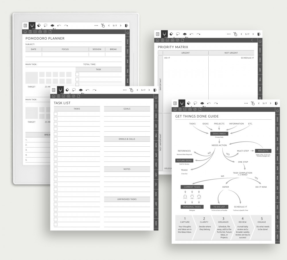 Optimize your planning with the Supernote To-Do List, designed to boost productivity and organization on your device! Customize your pages and take advantage of specialized project and productivity layouts.